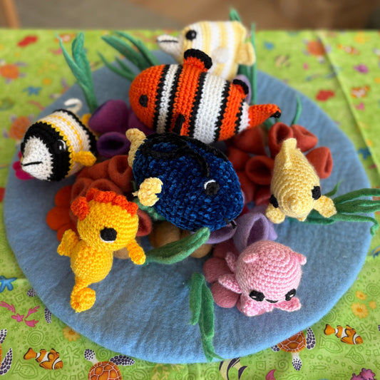 Crocheted Mr Ray with Nemo, Dory and Friends