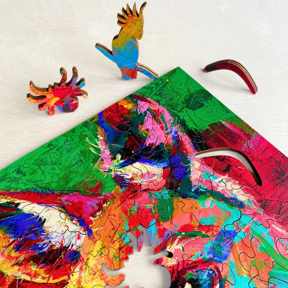 This striking Kangaroo is our third original artwork from Jos Coufreur. The colours are captivating, and this puzzle is just so enjoyable to build.