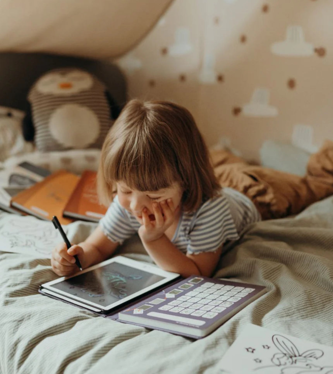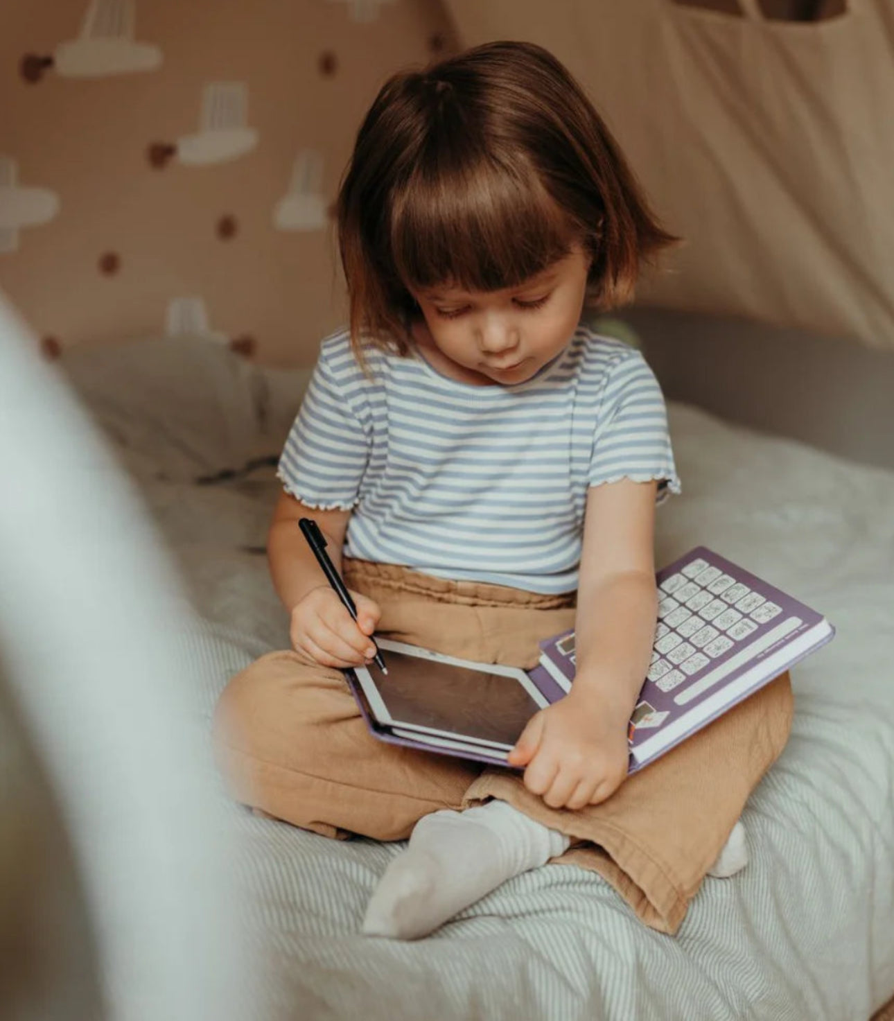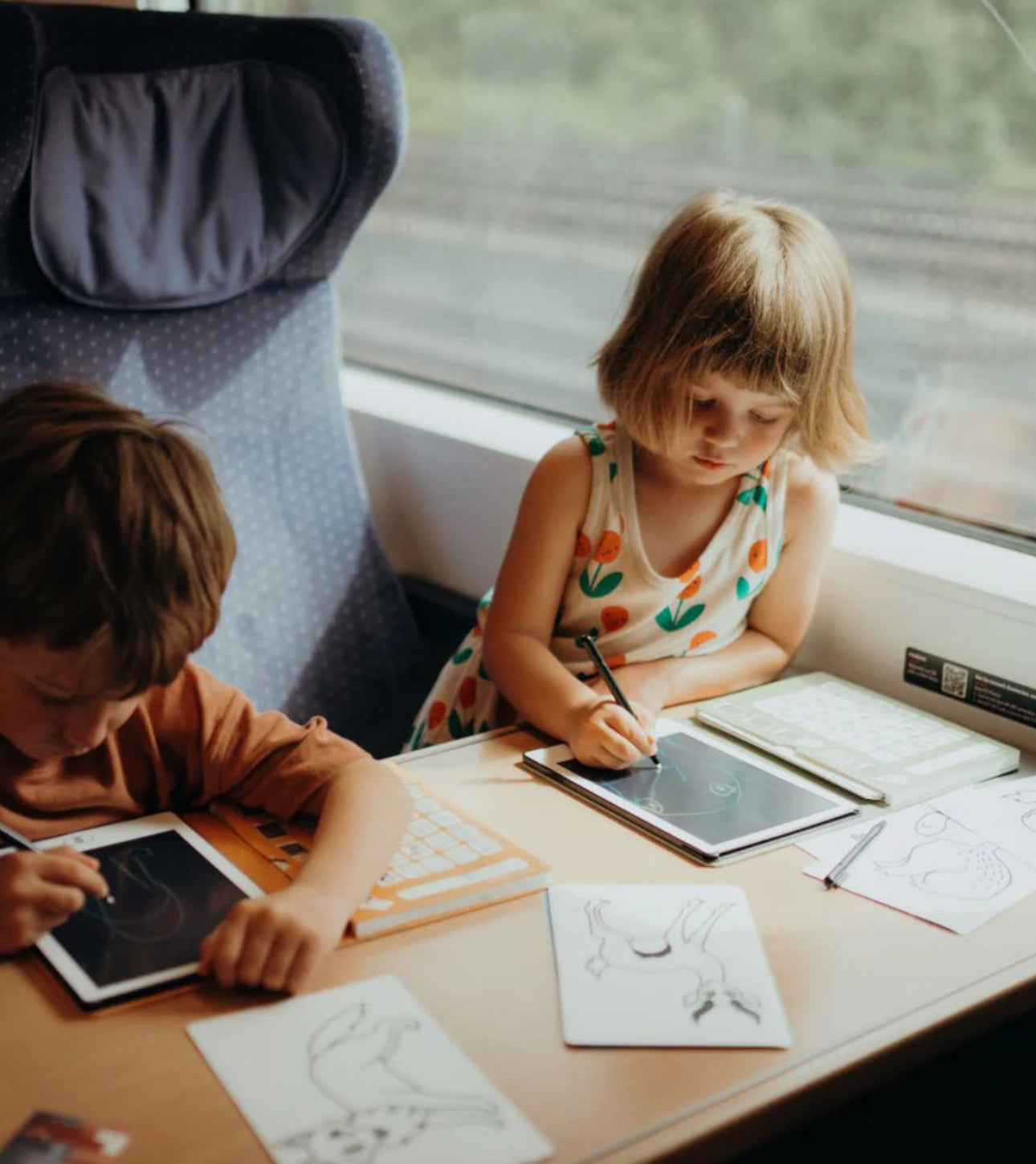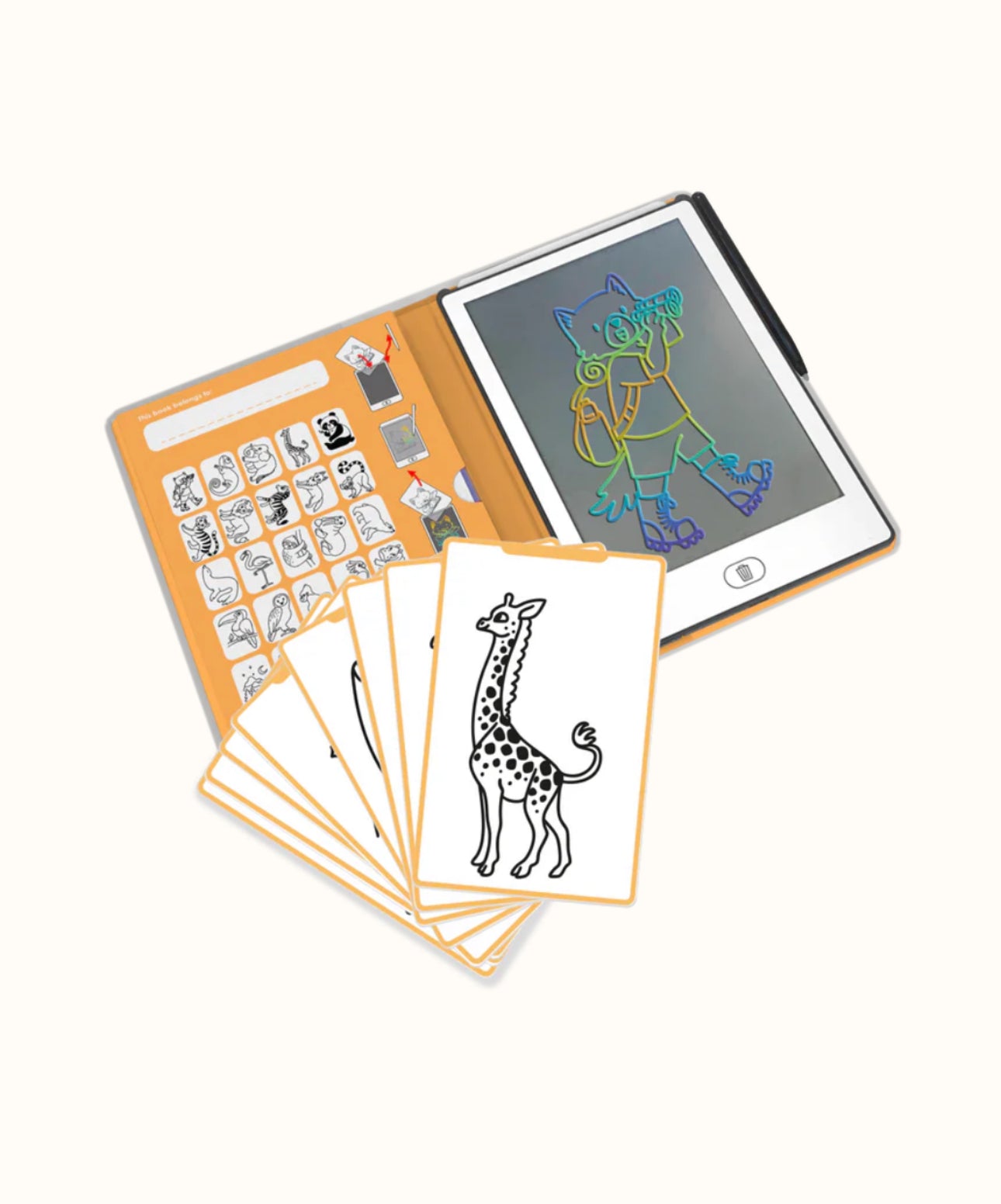 Give your child a limitless drawing experience with KIDYDRAW-MINI, a drawing book with LCD screen featuring 30 transferable illustrations and 5 unique themes. Ideal for stimulating creativity and independent learning, it slips easily into any bag, so you can create anywhere, anytime.