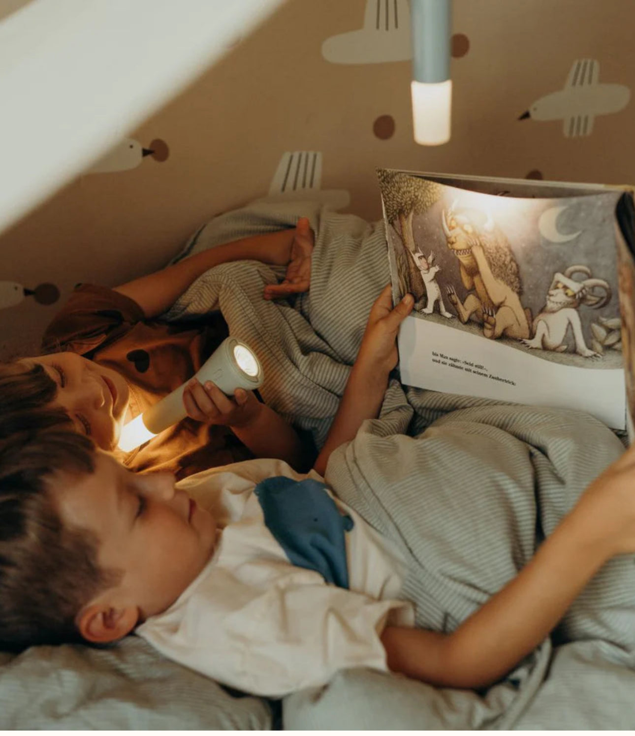 Illuminate your children's nights with KIDYFLASHLIGHT, a multifunctional flashlight designed to spark the imagination and provide a sense of security. Perfect for exploring, telling stories or warding off monsters, KIDYFLASHLIGHT is much more than just a lamp - it's a companion for play and adventure.