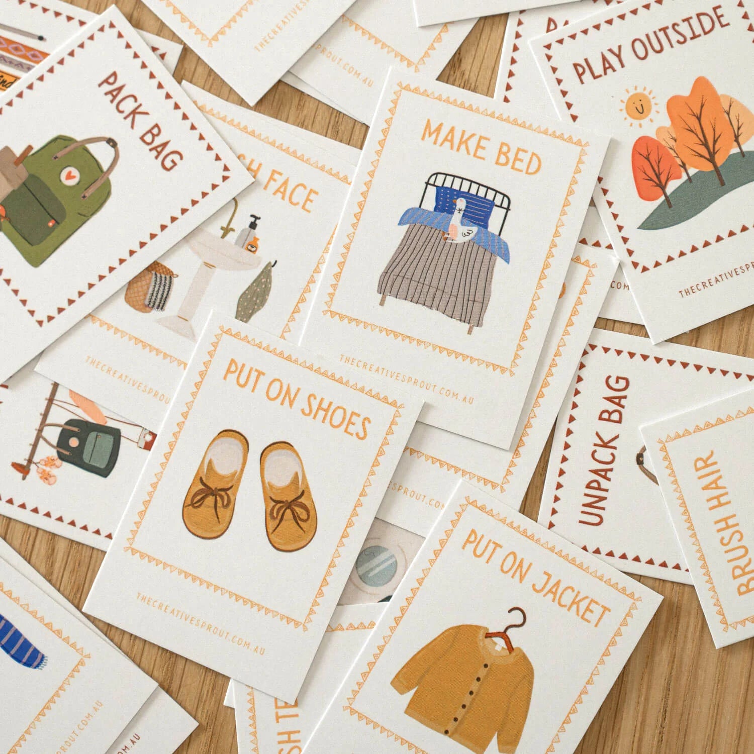 Our best-selling set of 72 Routine Cards has now been revised to a smaller size! Featuring the same cards in a 4x6cm format and an organic cotton drawstring bag for safekeeping. PLUS a handmade timber stand to help your child easily visualise the steps in their routine.