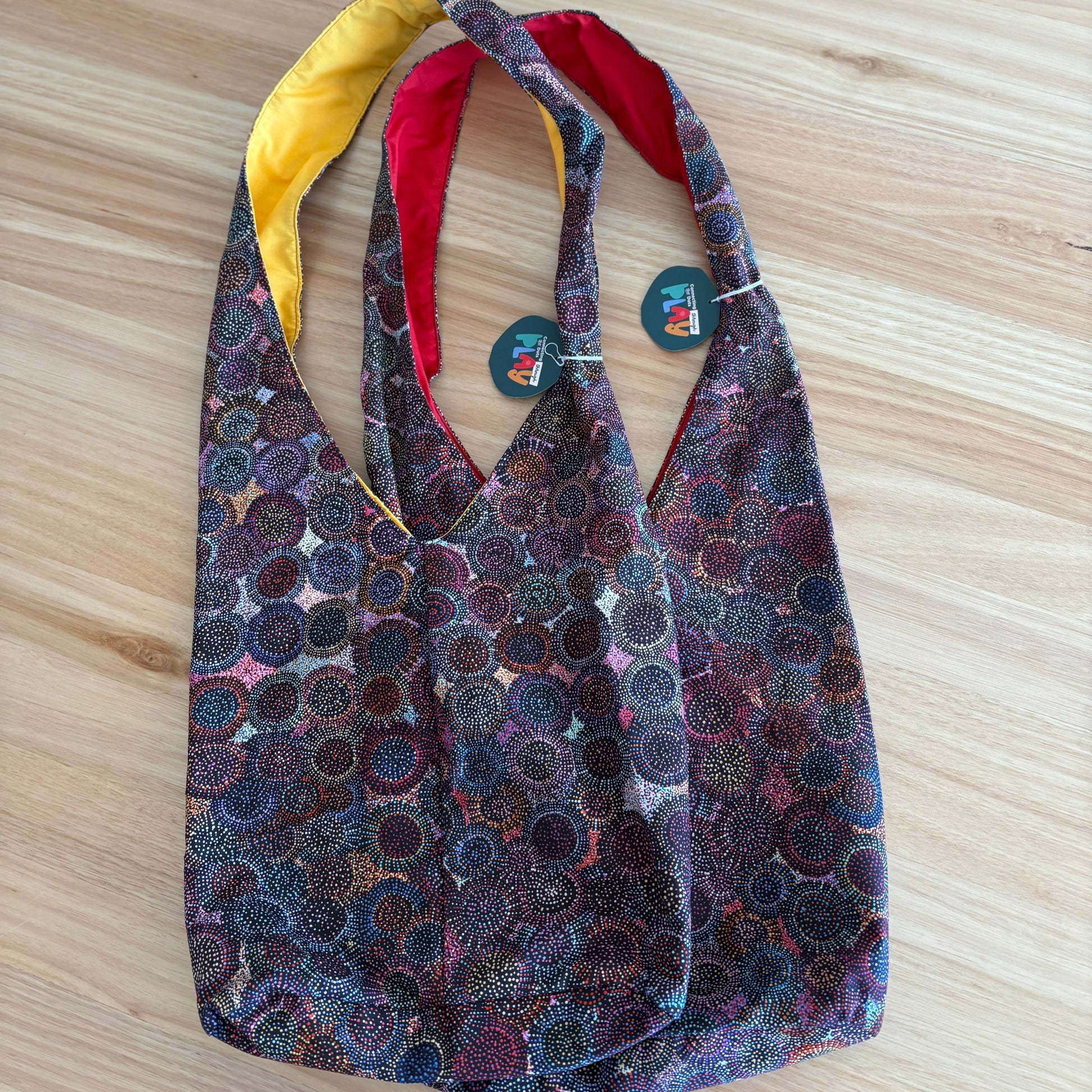 Throw everything in and go with this beautiful, handcrafted double lined sling bag sewn by local artisan Debbie Drury in Tolga, nestled in the heart of the Atherton Tablelands, QLD.
