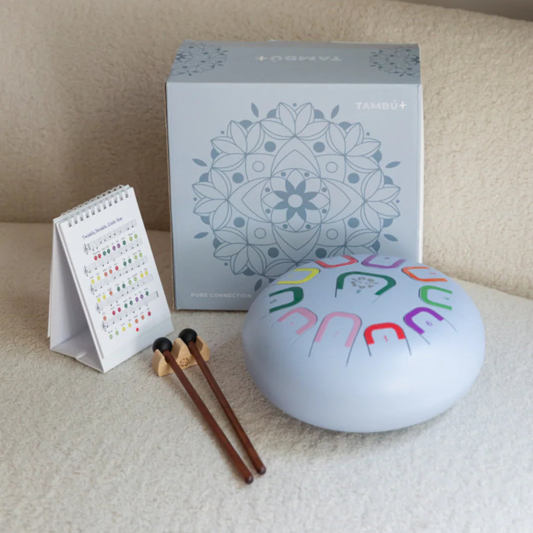 Tambú is an innovative tongue drum designed for all ages. It allows you to create harmonious melodies from the very first moment, with no prior musical knowledge required. Its colour and number coding system makes learning intuitive and fun.